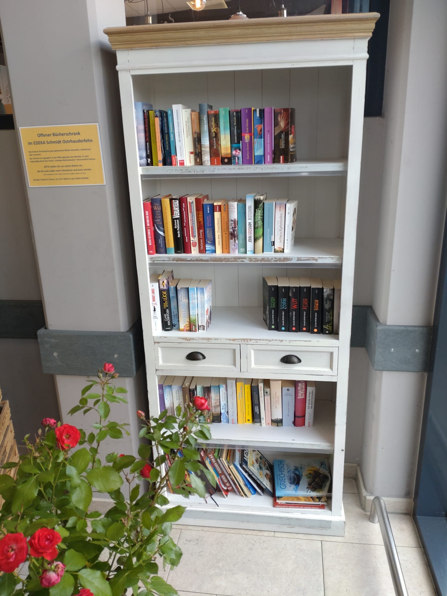 Im Sonderpostenmarkt Wreesmann und im Edeka-Markt Schmidt an der Ostrhauderfehner Hauptstraße können Lesefreunde jetzt gute gebrauchte Bücher aller Genres kostenfrei einstellen, mitnehmen und tauschen, teilt der Vereinsvorsitzende Detlef M. Plaisier mit. Die bereits bestehende Büchertonne bei Wreesmann wurde komplett mit einem Farbanstrich versehen und neu befüllt. Im Edeka wurde von Inhaberin Franziska Schmidt ein Schrank zur Verfügung gestellt. Beide Orte werden von Mitgliedern des Vereins „Fehntjer Bücherbooster“ ehrenamtlich betreut. „Die Wahl der Standorte hat sich schon in den ersten Tagen als richtig erwiesen“, so Detlef M. Plaisier. „Wir mussten mehrere Kartons Bücher nachfüllen.“