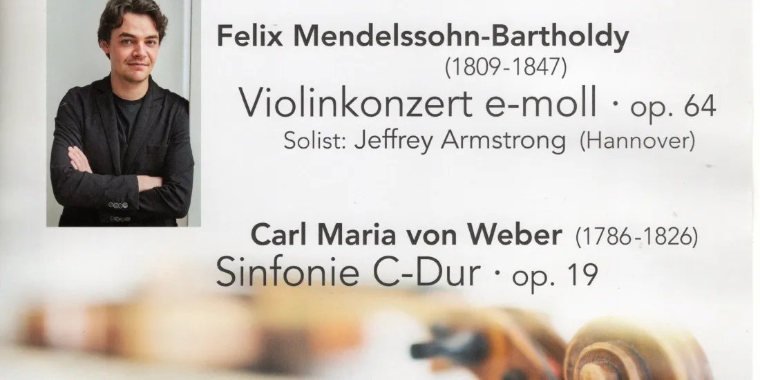 Das alljährliche Sinfoniekonzert des Ostfriesischen Kammerorchesters wartet in diesem Jahr mit Werken von Mozart, Mendelssohn und Carl Maria von Weber auf. Solist in Mendelssohns berühmtem Violinkonzert e-moll ist Jeffrey Armstrong aus Hannover. Außerdem erklingen Mozarts Ouvertüre zu "Idomeneo" und Webers 1. Sinfonie. Das Ostfriesische Kammerorchester spielt, erweitert durch Bläser aus der Region, unter der Leitung von Christoph Otto Beyer.