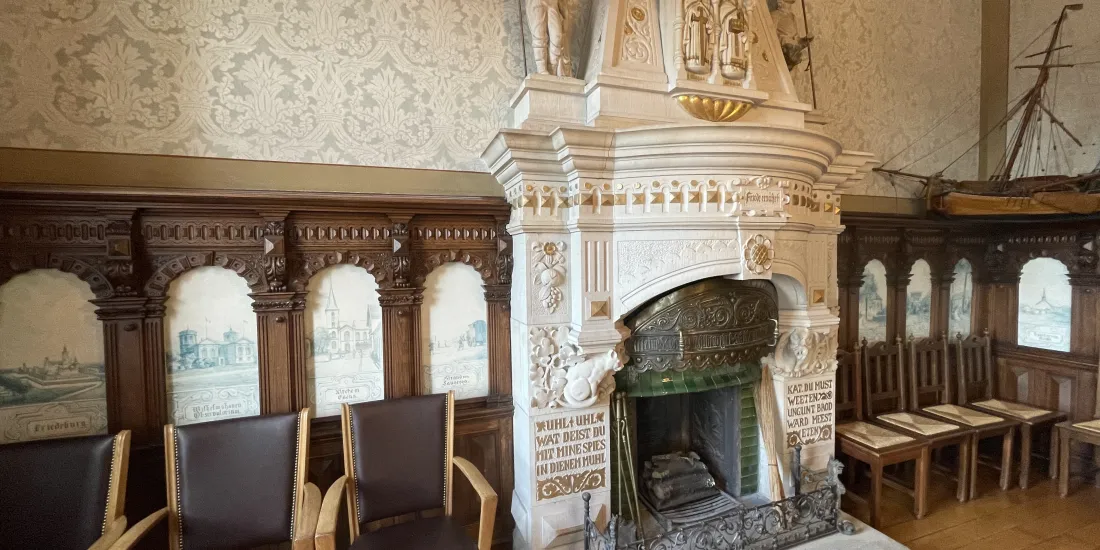 In den 50 Jahres des Bestehens des Kulturrings fanden zahlreiche Konzerte in diesem wunderschönen Saal statt und dessen Akustik hat die vielen Künstlerinnen und Künstler immer wieder fasziniert. Sowohl von den oft von weit her angereisten Musizierenden als auch aus unserem Publikum kam häufig die Frage auf, welche Bedeutung die Bildtafeln an den Wänden oder die Inschriften am Kamin haben. Heinz Buss, seit Jahren im Vorstand des Kulturrings tätig, wird – wie schon in den Vorträgen zu William Turner, Vincent van Gogh und Max Liebermann – die Ergebnisse seiner Recherchen multimedial präsentieren.