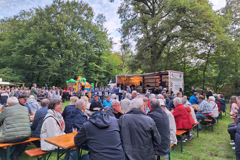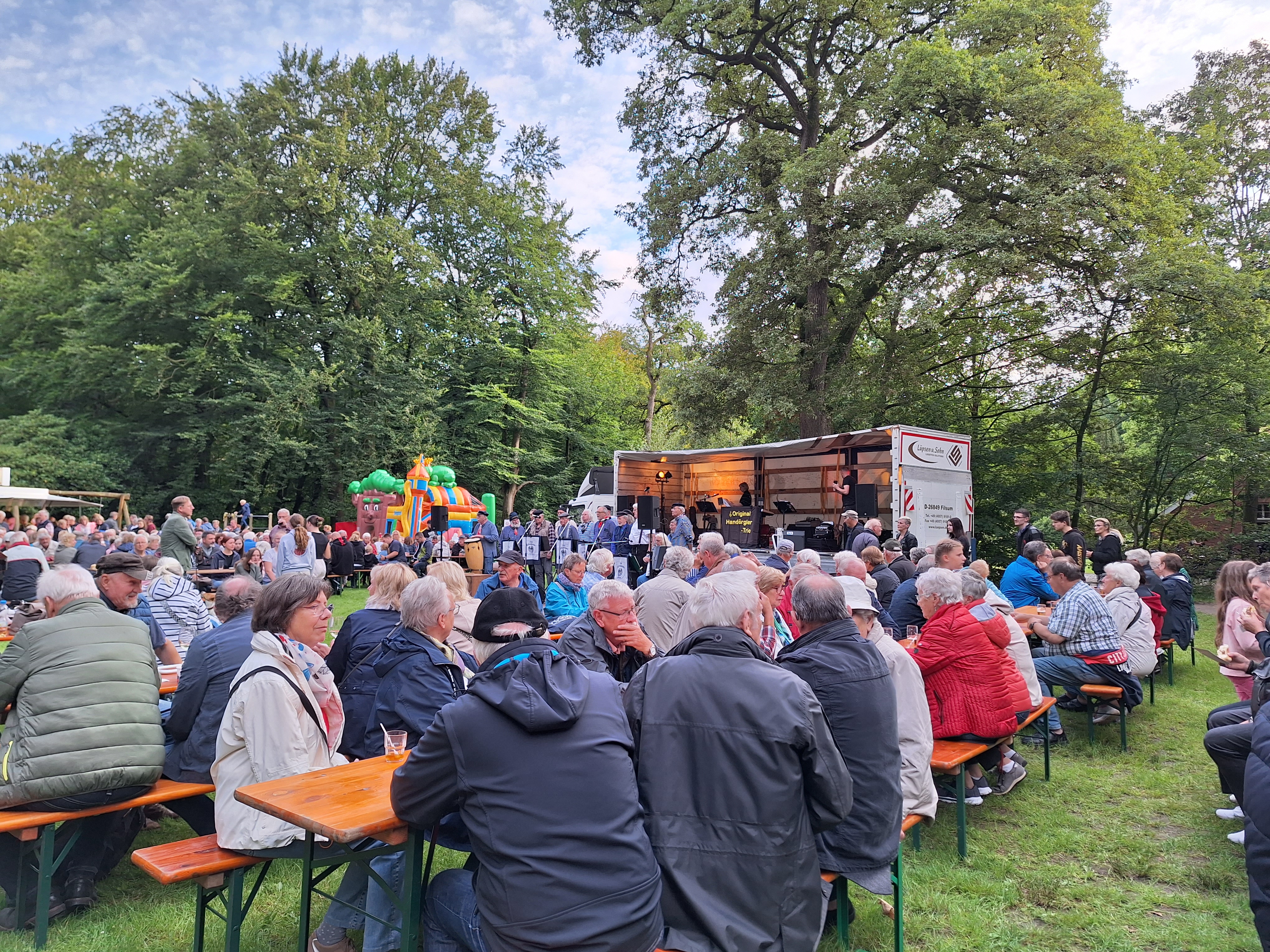 Lasst uns gemeinsam den Sommer feiern! 🎶 Das „Original Handörgler Trio“ sorgt wieder für richtig gute Stimmung, während die Lichtillumination die Waldlichtung in ein gemütliches, stimmungsvolles Ambiente taucht. ✨