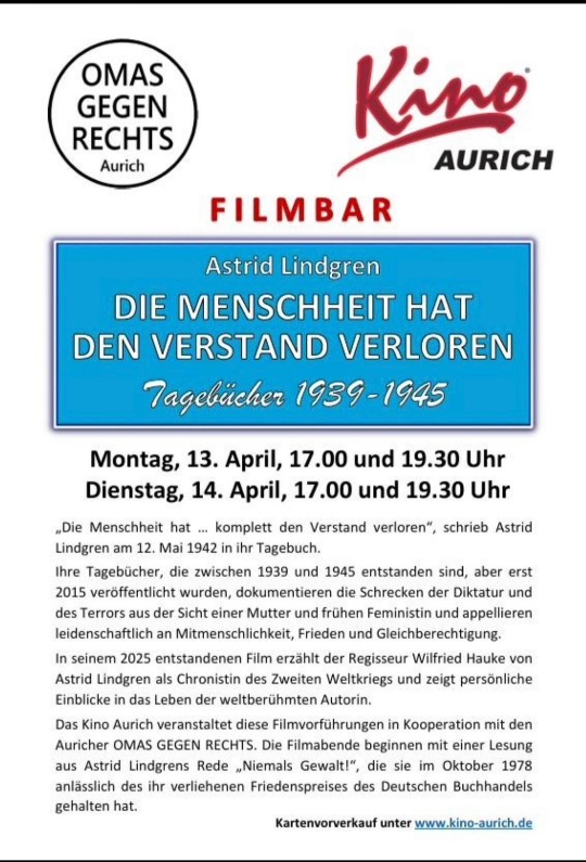 Bei der Veranstaltung handelt es sich um eine Kooperation der OMAS GEGEN RECHTS Aurich mit dem Kino Aurich.