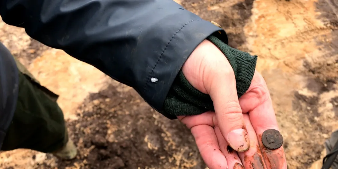„Nachdem wir mit den Sonden keine weiteren Münzen orten konnten, haben wir einen Grabungsschnitt bis auf 80 Zentimeter Tiefe gemacht und auch in einem halben Meter Tiefe noch Münzen gefunden. Da wussten wir, wir müssen tiefer gehen“, erklärte der ehrenamtliche Sondengänger Sebastian Heibült. An diesem Punkt seien die technischen Möglichkeiten der Sondengänger erschöpft gewesen. Dann wurde gemeinsam mit den Archäologen der Ostfriesischen Landschaft ein Bagger eingesetzt, um den Oberboden vorsichtig in dünnen Schichten auf einem rund 2.000 Quadratmeter großen Areal abzutragen. So sei dann der Schatz von 96 römischen Münzen aus der Erde geborgen worden. „Das ist wie Ostern und Weihnachten an einem Tag. Gerade in Norddeutschland ist es ganz schwierig, etwas Römisches zu finden“, freute sich Sebastian Heibült.