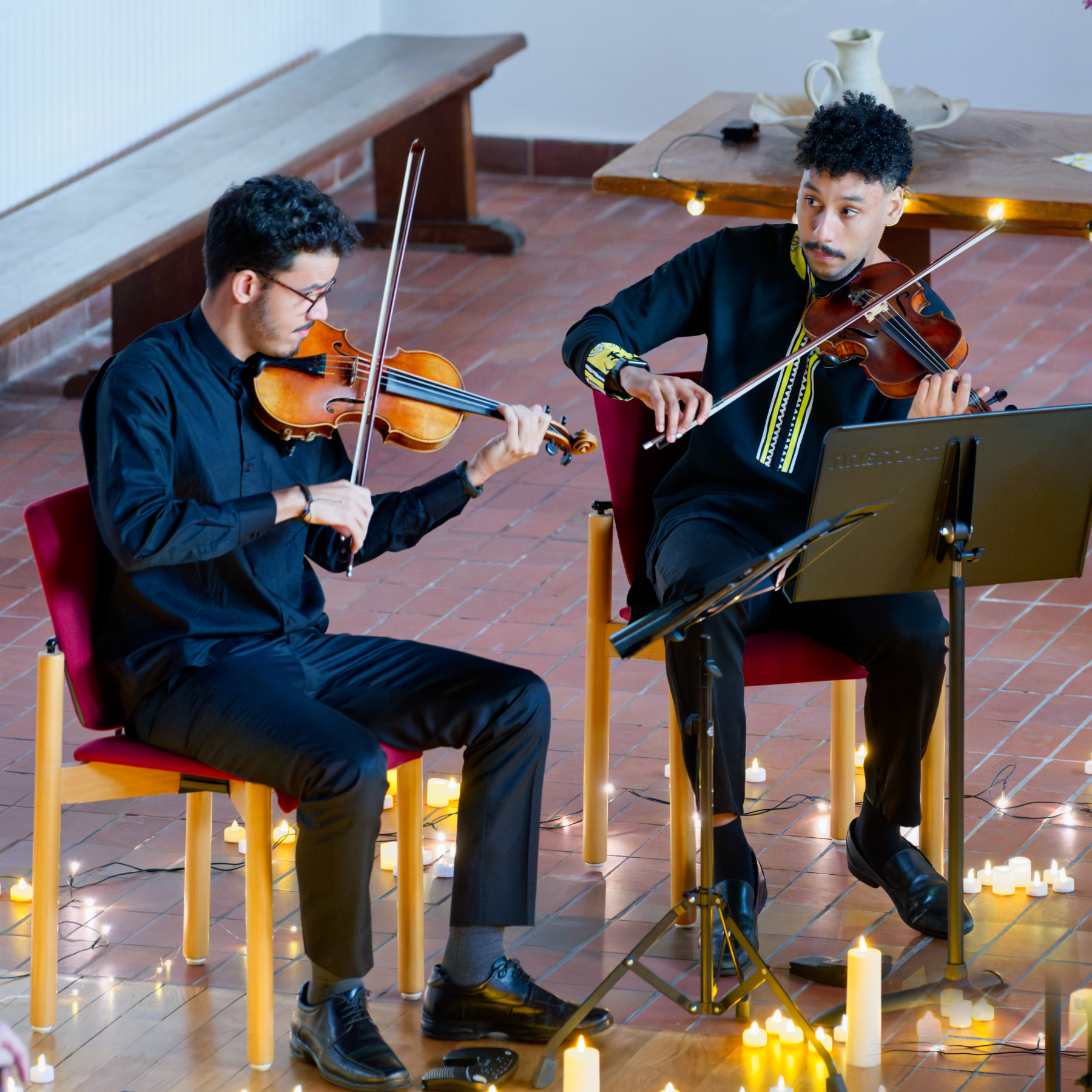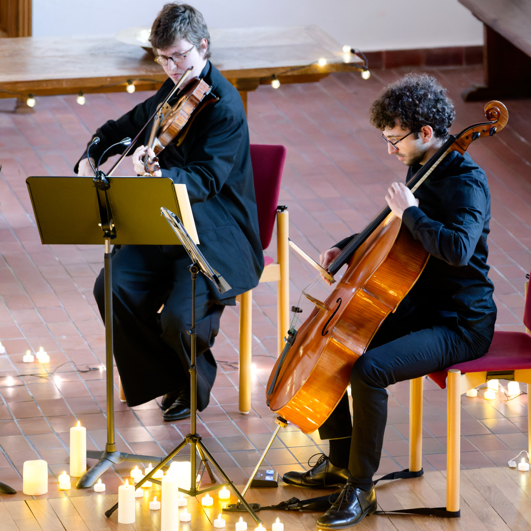 Stimmungsvolles Programm in erleuchteter Umgebung: Iury Santos, Uiler Moreira, Felix Lohde und Diego Arangoa