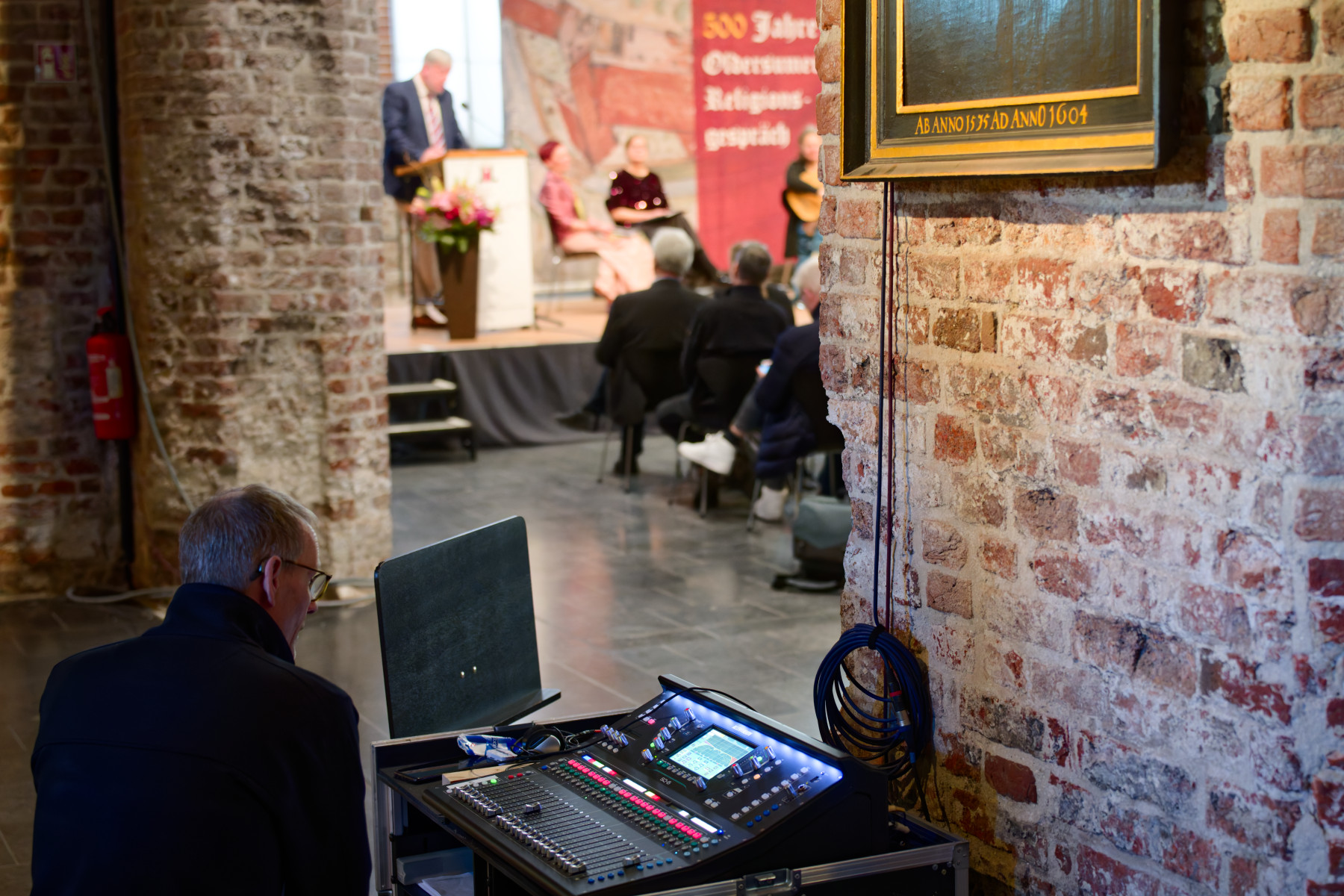 Als „Meilenstein ostfriesischer Religionsgeschichte“ bezeichnete der Kurator das Religionsgespräch, das vor 500 Jahren Prediger aus der ganzen Region nach Oldersum geführt habe. Voß zeigte in seiner Einführung in die Ausstellung, wie stark die Verflechtungen von Theologie und Politik waren und welch eine wichtige Rolle Oldersum damals einnahm. Als Ulrich von Dornum zum Beispiel drei Jahre nach dem Aufeinandertreffen in Oldersum gegenüber Graf Enno II. ein weiteres Gespräch anregte, das sich mit dem innerprotestantischen Abendmahlsstreit beschäftigen sollte, schlug er als einen Beteiligten Johannes Bugenhagen vor. Das Gespräch findet statt, allerdings nicht in Ostfriesland, sondern in Flensburg, wo Bugenhagen auf Melchior Hofmann trifft. Die Thesen Hofmanns sind derart, dass er mitsamt seiner Anhänger des Landes verwiesen wird. Er flieht – nach Oldersum, wo er auf Andreas Bodenstein trifft, der ebenfalls in Ulrichs Burg Zuflucht gesucht hatte.