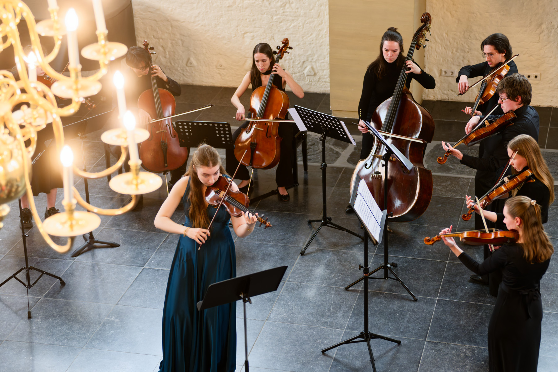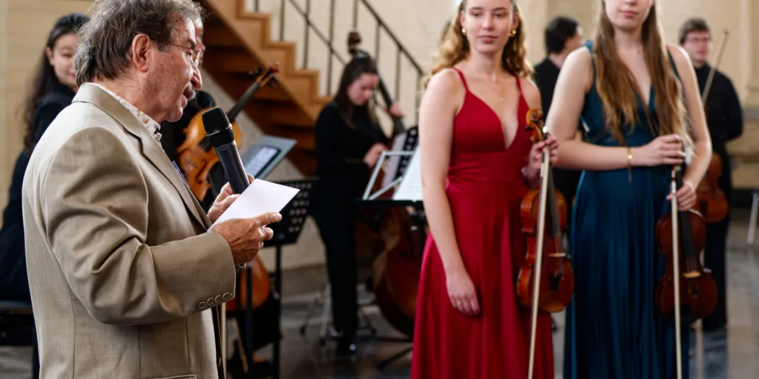 Insgesamt umfasst dieses Festival in seinem ersten Durchgang drei Konzerte. Am Eröffnungsabend standen die „Vier Jahreszeiten“ – von Antonio Vivaldi und Astor Piazzolla auf dem Programm. Elena Meyer und Polina Munteanu haben sich dieses Festival ausgedacht, und sie übernahmen auch die Solo-Passagen. Die beiden Violinistinnen wollen mit „Poème“ vor allem die Jugend ansprechen, daher ist als Veranstalter der Verein „Freunde und Förderer der Klassik“ eingebunden. Vorsitzender Dr. Ghassan Al Halabi sieht die klassische Musik als eine „Basis für eine kultivierte Gesellschaft“ und als Mittel für eine geistige Revolution, die musizierende Kinder zu zufriedenen Menschen werden lässt – und die hineinführt in „eine Welt, in der Geld, Macht und Gier keine Rolle mehr spielen“.