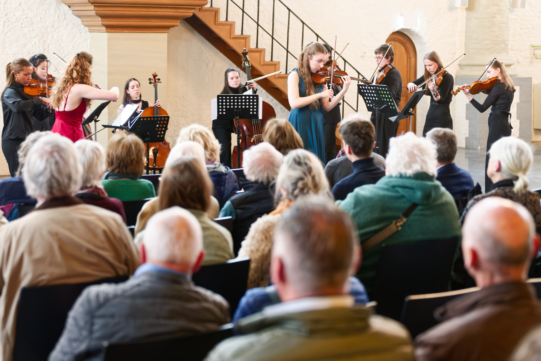 Das Ensemble ging ganz in der Musik auf, die zwischen melancholisch und stürmisch drängend angelegt ist und genoss – ebenso wie das Publikum – sowohl die vom Tango Nuevo geprägte Fassung Piazzollas als auch die raffinierte barocke Musik Vivaldis. Das Ensemble war intensiv bei der Sache, die Außenwelt schien nicht mehr existent. Es war ein Musizieren, das sich löste vom Alltag und seinen Problemen. Insbesondere die große Sicherheit in der Präsentation war bemerkenswert – nicht nur bei den Solistinnen, sondern auch bei den weiteren neun Musikern, die mit viel Dynamik bei der Sache waren. Bemerkenswert gestaltete sich das harmonische Miteinander im Spiel, die Sorgfalt, mit der Polina Munteanu ihrer doppelten Aufgabe als Solistin und Orchesterleiterin nachkam und der flotte Wechsel der Solistinnen: Polina Munteanu spielte die Vivaldi-Soli, Elena Meyer jene von Piazzolla – beide in kraftvoller Grifftechnik. Das war erstklassig.