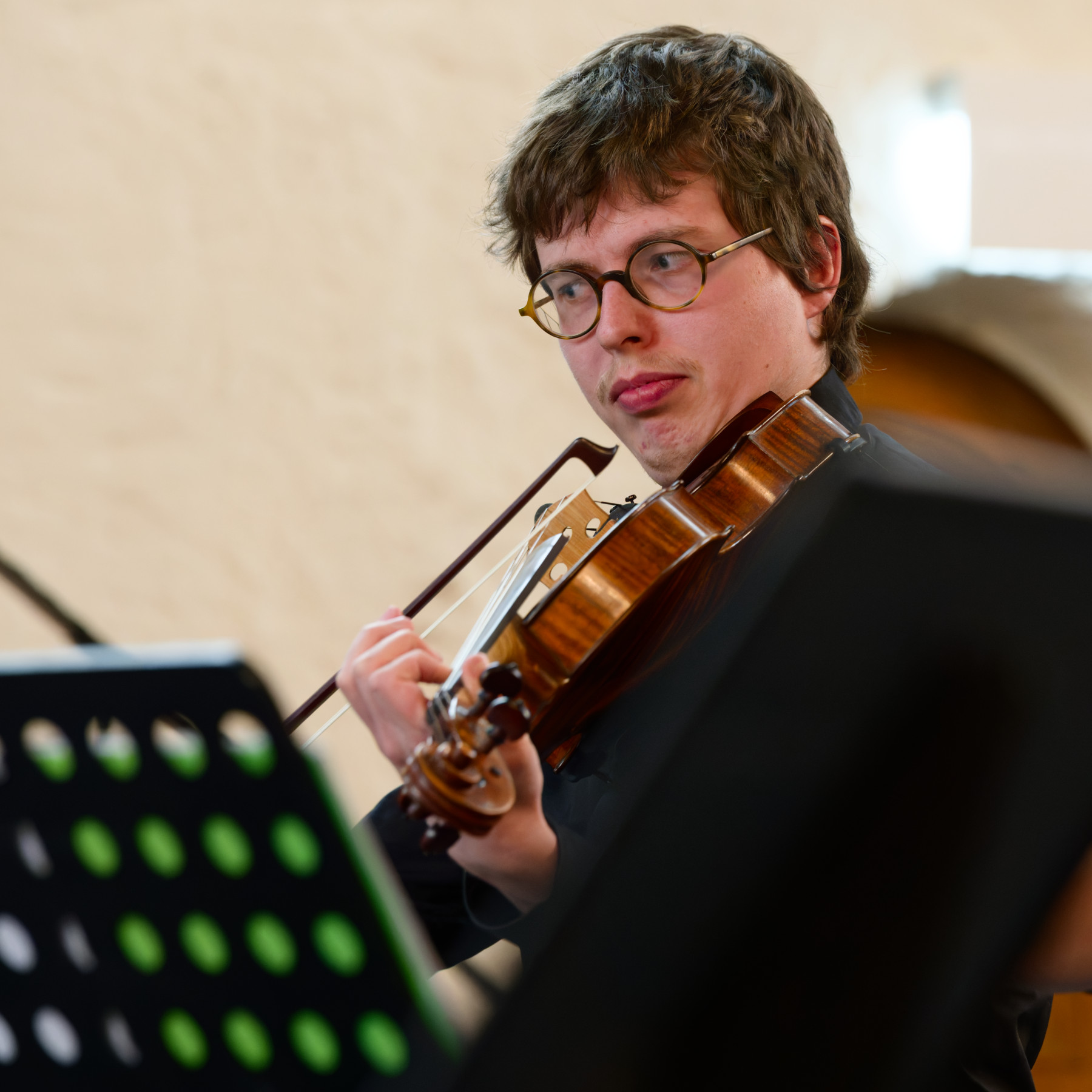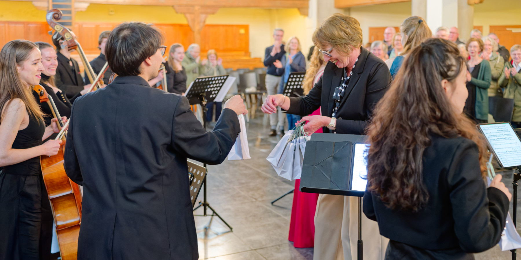 Das schöne Konzert brachte Sturm und Drang in die Neue Kirche und endete mit einer winzigen Zugabe: der Nummer 5 „Vivace“ aus den „12 Duetten für zwei Violinen“ von Reinhold Glière, einem russischen Komponisten – lebhaft, beschwingt, einfach schön.