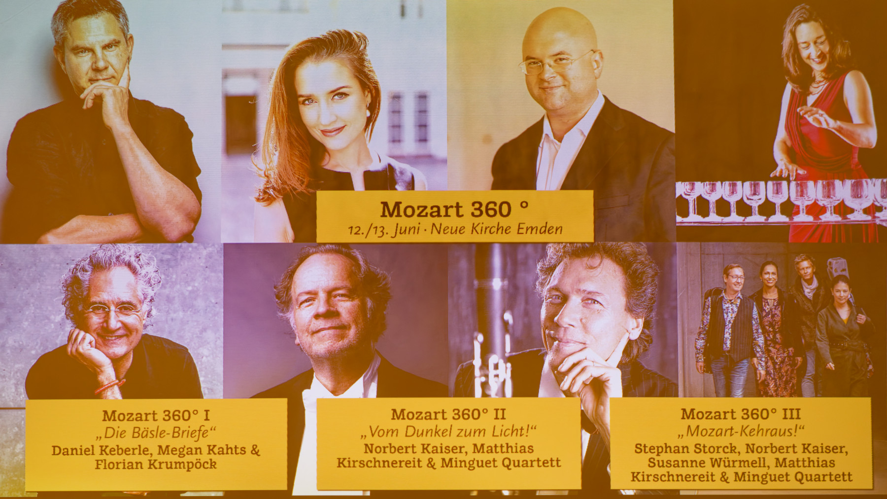 Ein Konzert mit vier musikalischen „Wunderkindern“ steht ebenso auf dem Programm wie das Projekt SingBach, das in diesem Jahr in Emden und Leer stattfindet. Die „Damen und Herren Dafke“ geben sich im Fährhaus am Borkumkai in Emden die Ehre. Das Trio „Bidla Buh“ wird im Rahmen der letzten gemeinsamen Saison für musikalische Späße sorgen. Kabarettist und Sänger Christian Ehring kommt zum zweiten Mal, weil es ihm bei den „Gezeiten“ im ersten Durchgang so gefallen hat. Es gibt Jazz- und Bigband-Konzerte, eine Glasharfen-Spielerin ist zu erleben, die „Langen Nächte“ gehen wieder an den Start, es gibt Lesungen mit Musik – unter anderem aus Mozarts frivol-erotischen „Bäsle-Briefen“. Dieses Format ist Bestandteil eines zweitägigen Festivals im Festival, das „Mozart 360º“ betitelt ist.