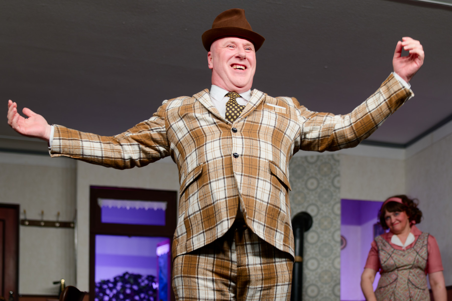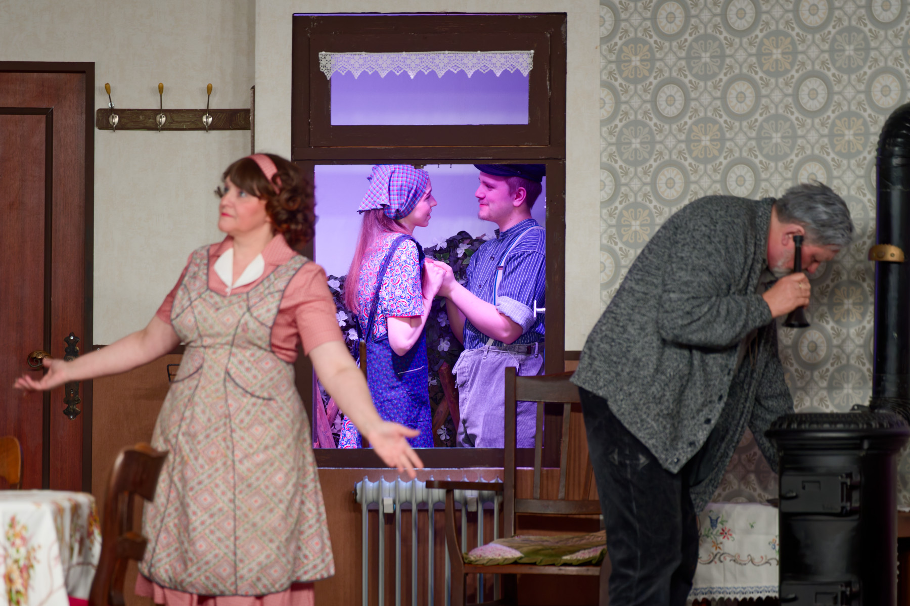 Besonders schön gelang die Einleitung von Birgit Frerichs, die das Publikum mit historischen Fakten aus den 50ern auf die Veranstaltung einstimmte. In der Pause spielte Karl-Peter Frerichs, der für Licht und Ton sorgte, mit dem Bibi Johns-Schlager „Bella Bimba“ für entsprechendes Flair. Das Publikum reagierte mit ganzer Begeisterung auf das Stück, das wohl bei allen Anwesenden Erinnerungen an eine Zeit erweckte, in der das Geld knapp, der Zusammenhalt enger, die Menschen aber letztlich dieselben waren wie heute.