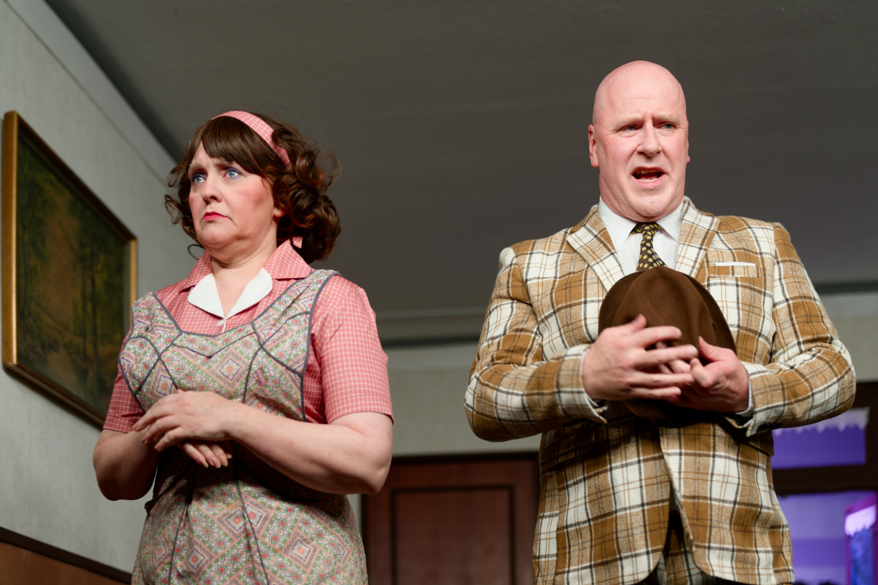 Eine wirkliche Bereicherung der Truppe ist Jana Iken, die als Lieschen eine tolle Leistung präsentierte. Frech, kess, mit knallroter Perücke war es ein Genuss, sie und ihre Aktionen zu beobachten. Dajo Kaiser, mittlerweile ein Urgestein der Friesenbühne, gab den zwielichtiger Arnold in herrlicher Retro-Karo-Kleidung und tobte sich als Betrüger in amüsanter Weise vor dem Publikum aus. Als steifer Rechtsanwalt Fesenfeld brachte Peter Bruns einen Hauch von Beamtentum auf die Bühne.
