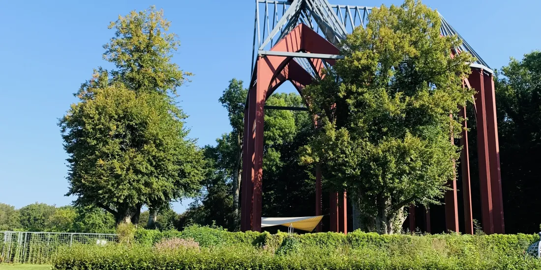 Ein besonderer Blickfang ist der rekonstruierte Dachreiter – jener für Zisterzienserbauten typische, turmartige Glockenaufsatz. Mit ihm erreicht die Nachbildung eine Höhe von fast 45 Metern und verleiht dem Ort eine eindrucksvolle Silhouette.