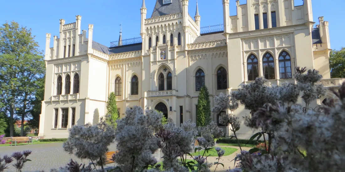 Im Schloss widmet sich ein Raum den Modeblumen – so nennen die Zeitgenossen besonders begehrte und allseits als schick geltende Zierpflanzen. Die meisten kommen nicht aus Europa, sondern wurden von Pflanzenjägern entdeckt und leidenschaftlichen Gärtnern und Gärtnerinnen bekannt gemacht. Auch auf der Evenburg spielten Modeblumen eine Rolle und es wird z.B. im Handelskatalog für neue Sorten der Georginen geworben.