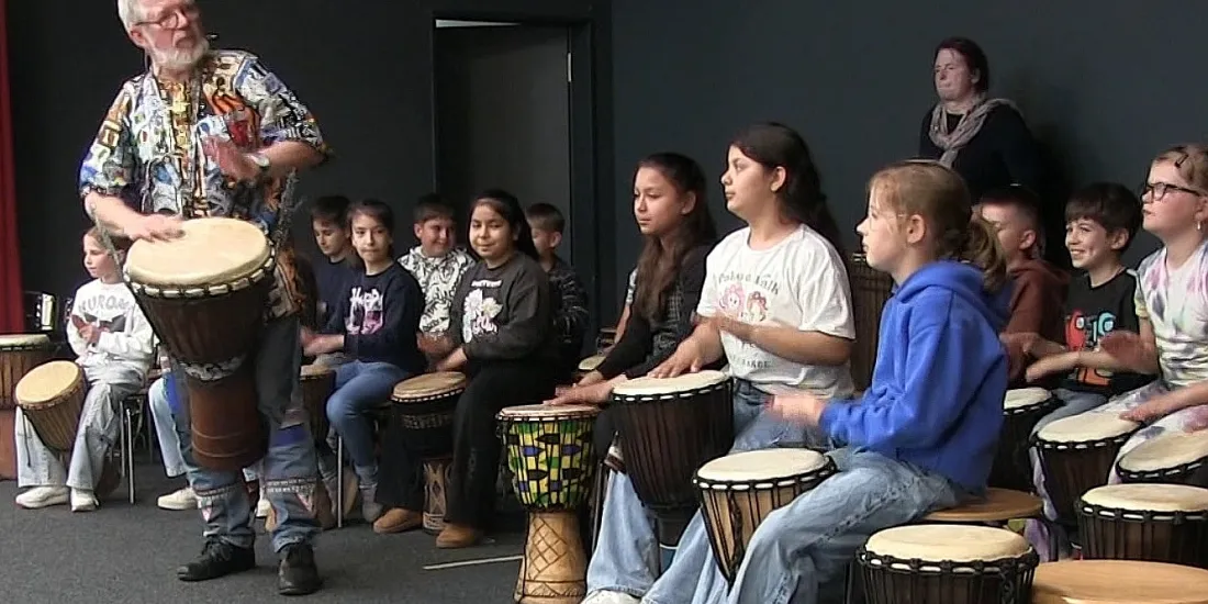 Im Verlauf einer Woche werden mit den verschiedenen Klassenstufen einer Grundschule afrikanische Trommelstücke und Lieder eingeübt und am Ende der Woche für die Schulöffentlichkeit präsentiert. Ein Klassensatz mit Djembetrommeln wird zur Verfügung gestellt. (Referenz: Grundschule Neermoor)