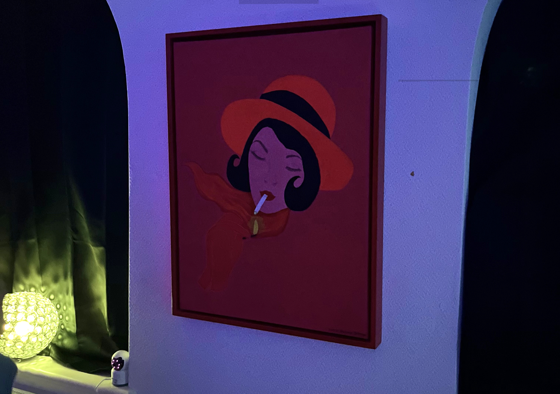 Malerei und bildende Kunst generell leben nicht nur von Form und Farbe, sondern nicht weniger von Licht und Lichtverhältnissen. Es ist eine alte philosophische (erkenntnistheoretische) Frage. Ist die Wiese an und für sich grün, oder nur für uns Menschen, die wir nur ein bestimmtes Lichtwellenspektrum wahrnehmen können? Und strahlt die Wiese im Mittagslicht nicht in ganz anderen Farben, als zum Sonnenuntergang? Welche der beiden Farben ist die „wirkliche“? Was ist mit Tieren, die die Welt nur in Grautönen wahrnehmen? Die Dunkel-Ausstellung des OKK spielt auf kreativste Weise mit dieser Idee, dass Farben in Abhängigkeit des Lichtes stehen. Und so ist ein Gemälde nicht nur eines, sondern in wechselndem Lichtspiel viele.
