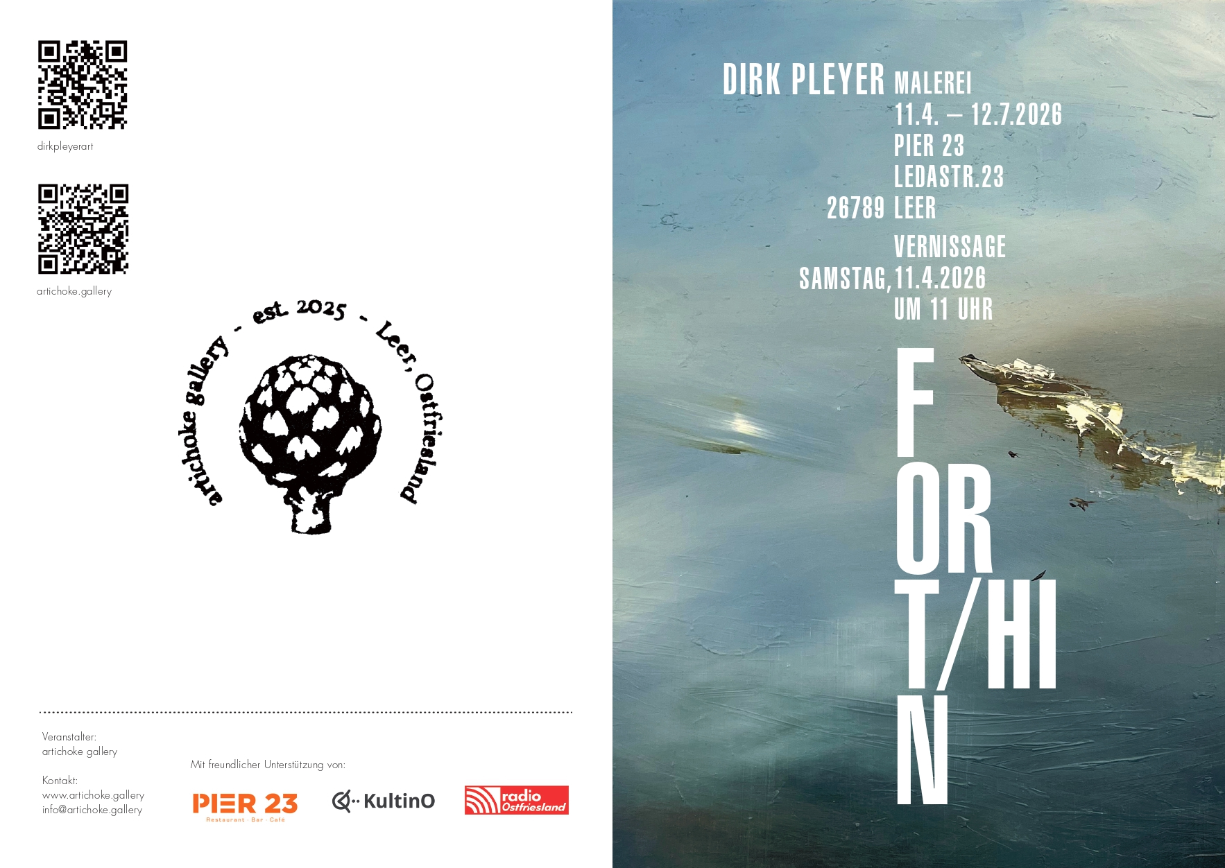 "FORT/HIN" markiert die dritte öffentliche Kunstausstellung von Dirk Pleyer in Ostfriesland, nachdem er bereits 2020 im Kunstverein Norden und 2025 im Norderneyer Conversationshaus und historischen Kurtheater ausstellte. Dirk Pleyer ist bekannt für seine gigantischen Installationen kleiner Formate.
