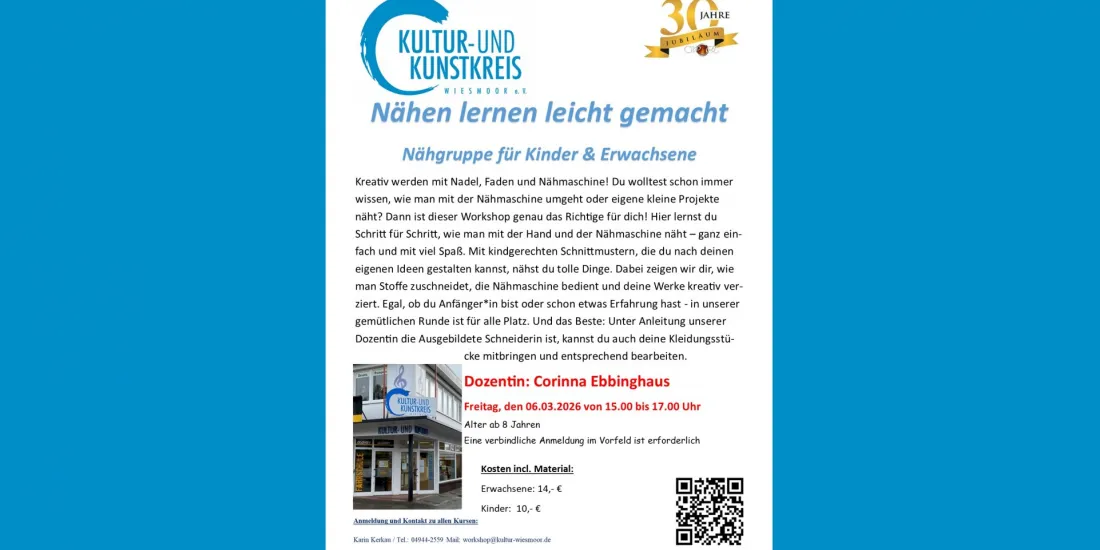 Kreativ werden mit Nadel, Faden und Nähmaschine! Du wolltest schon immer wissen, wie man mit der Nähmaschine umgeht oder eigene kleine Projekte näht? Dann ist dieser Workshop genau das Richtige für dich! Hier lernst du Schritt für Schritt, wie man mit der Hand und der Nadel näht - ganz einfach und mit viel Spaß. Mit kindergerechten Schnittmustern, die du nach deinen eigenen Ideen gestalten kannst, nähst du tolle Dinge. Dabei zeigen wir dir, wie man Stoffe zuschneidet, die Nähmaschine bedient und deine Werke kreativ verziert. Egal, ob du Anfänger*in bist oder schon etwas Erfahrung hast - in unserer gemütlichen Runde ist für alle Platz. Und das Beste: Unter Anleitung unserer Dozentin die Ausgebildete Schneiderin ist, kannst du auch deine Kleidungsstücke mitbringen und entsprechend bearbeiten.