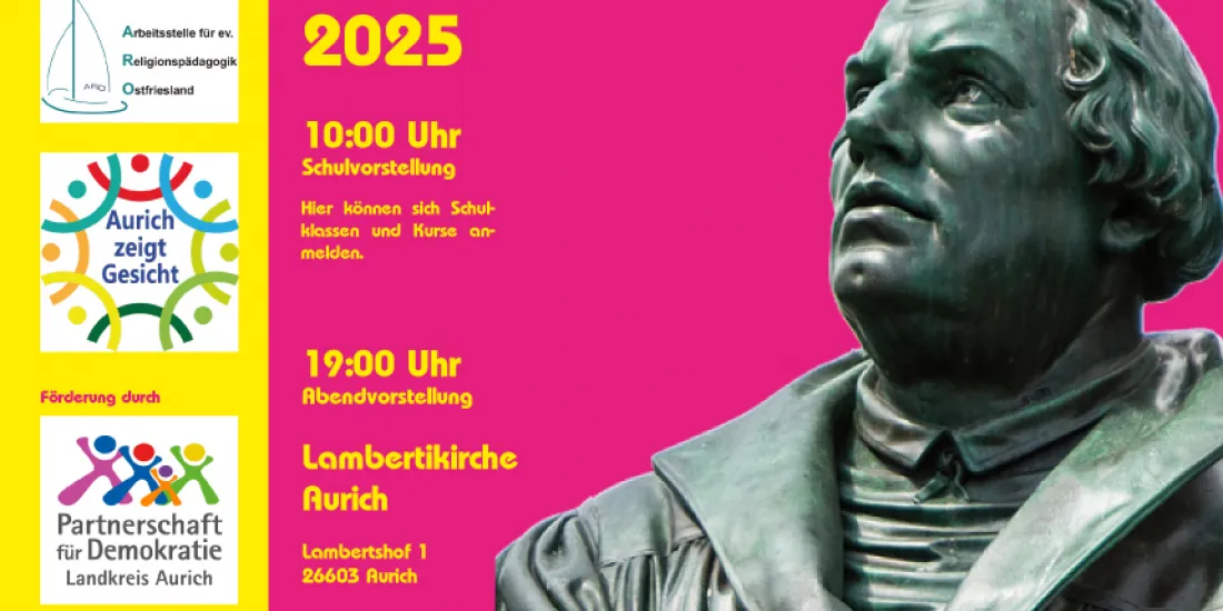 Die ARO und „Aurich zeigt Gesicht“ laden zu zwei Aufführungen des Stücks „Play Luther“ mit dem Theaterteam „EURE FORMATION“ ein.