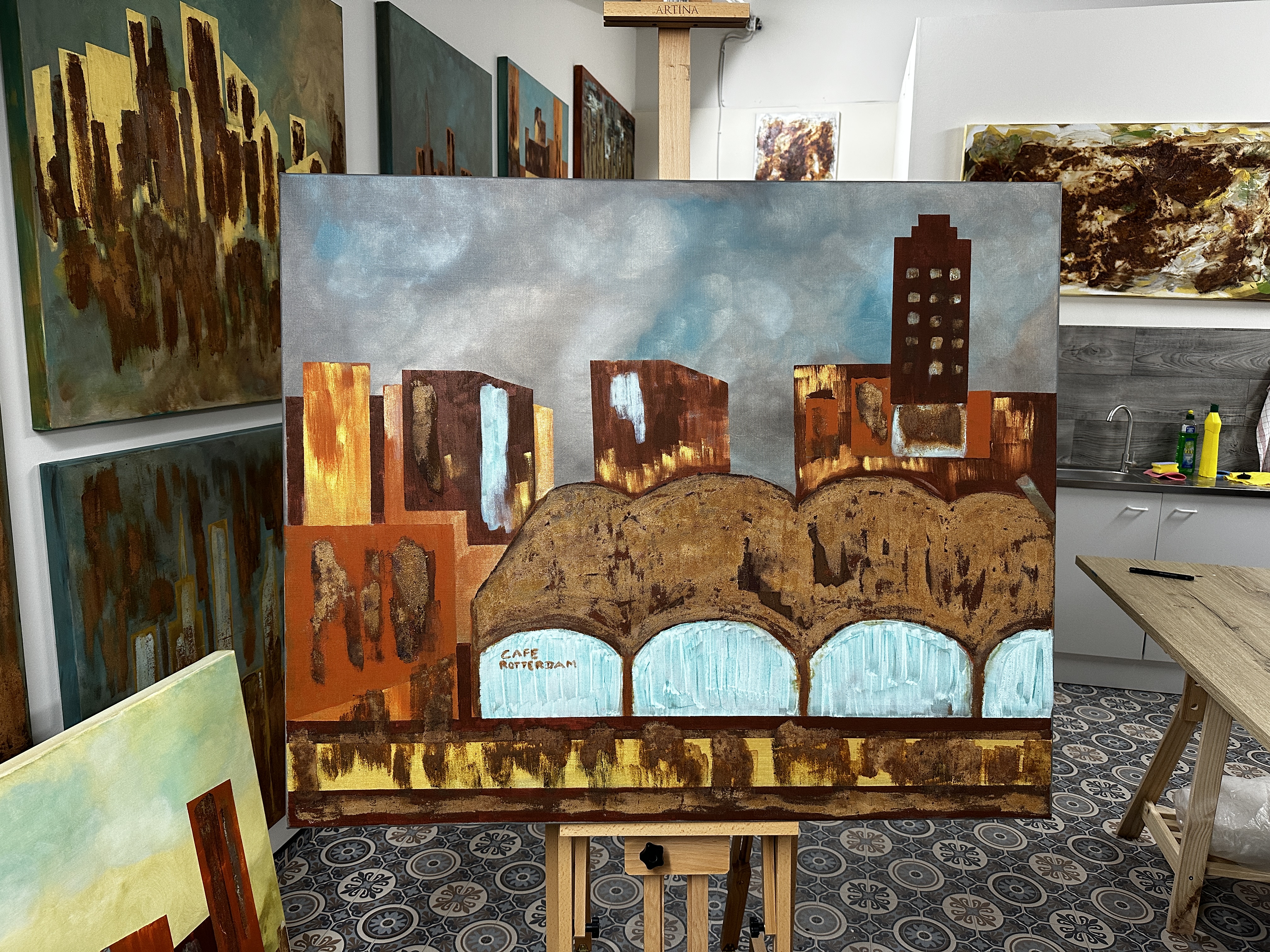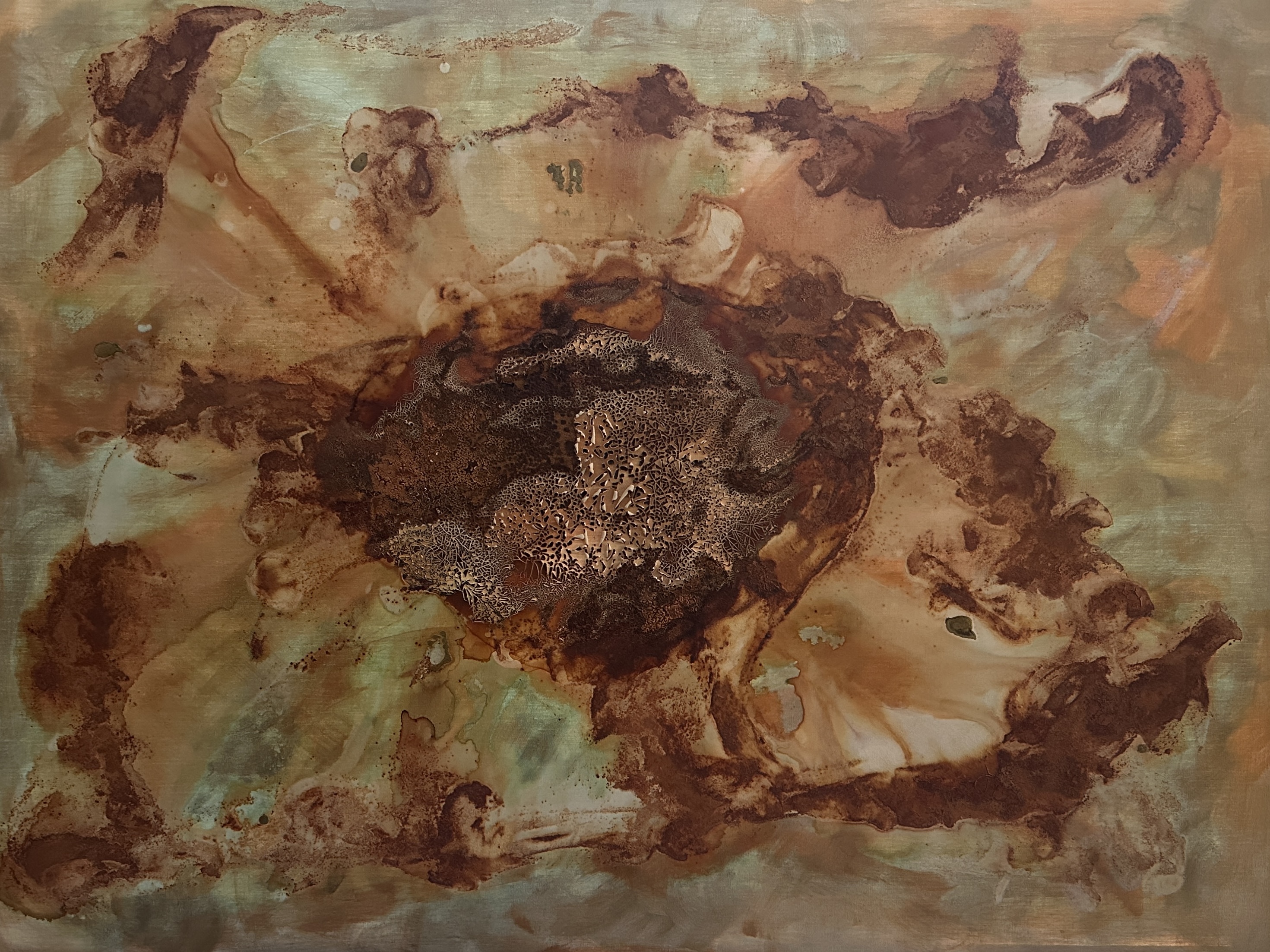 Entdecken Sie abstrakte Malerei zwischen Rost, Patina, Gold und Acryl - Werke die Architektur, Natur