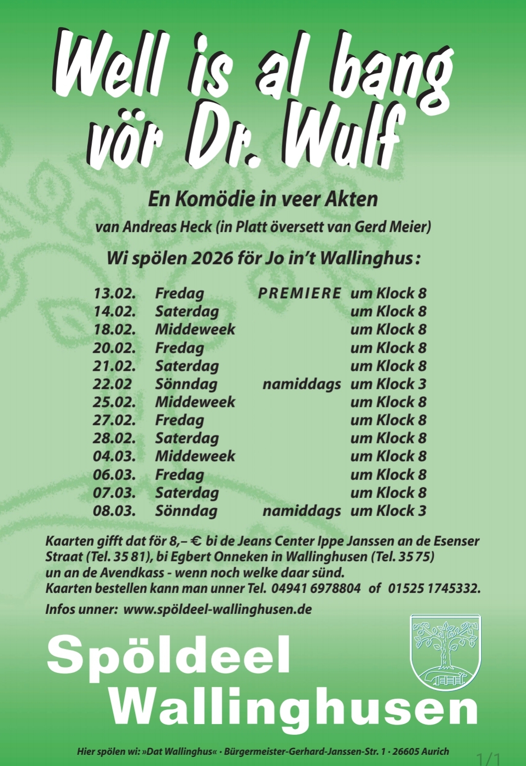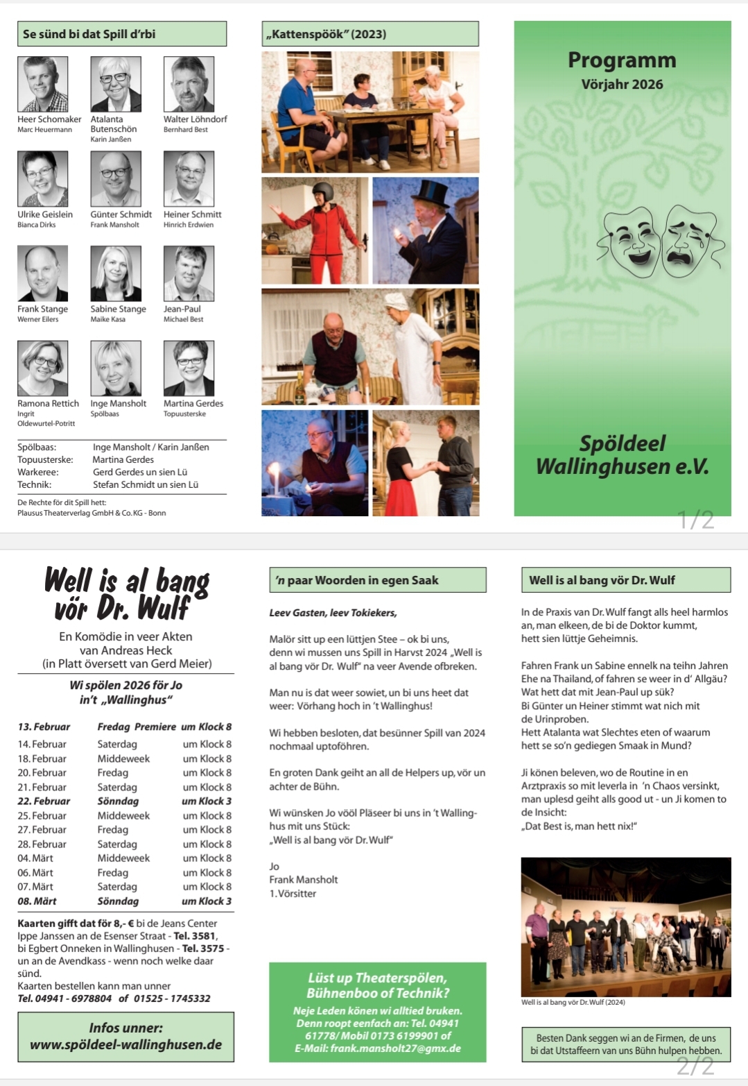 Unsere ersten Proben liegen bereits hinter uns und die Vorbereitungen für unser Theaterstück im Frühjahr 2026 – „Well is al bang vör Dr. Wulf“ – laufen auf Hochtouren.